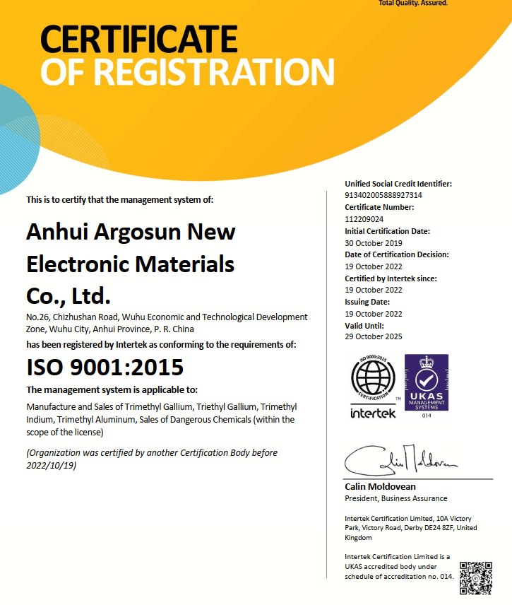 Headquartered in China’s electronic chemical industry base — Wuhu City, Anhui Province, the company specializes in the research and development and production of high purity chemical materials in the electronics industry. The company is composed of a professional and efficient team, whose core members are all senior experts in the industry, who have undertaken the related topics of China’s National 863 Program.